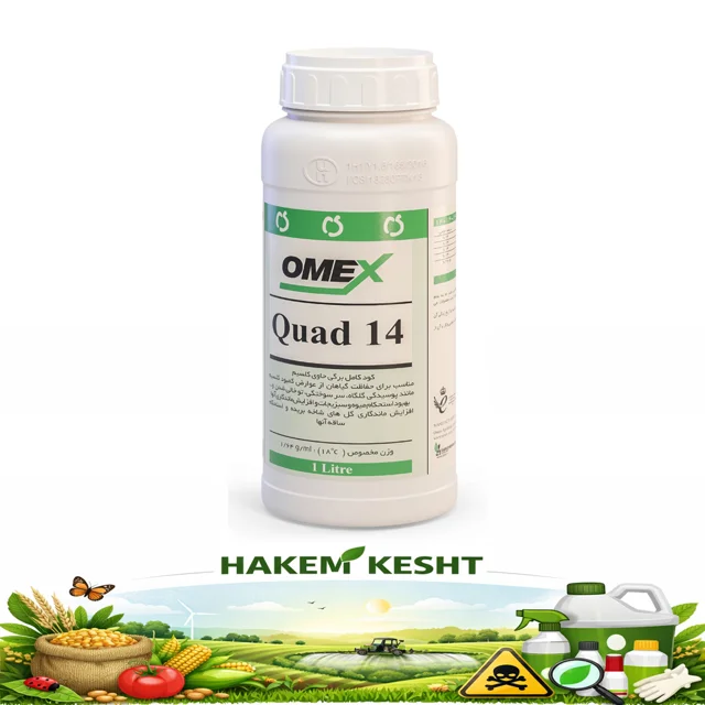 کواد 14 امکس یک سوپانسیون حاوی کلسیم محلول در آب همراه با فسفیت پتاسیم و نیتروژن است.