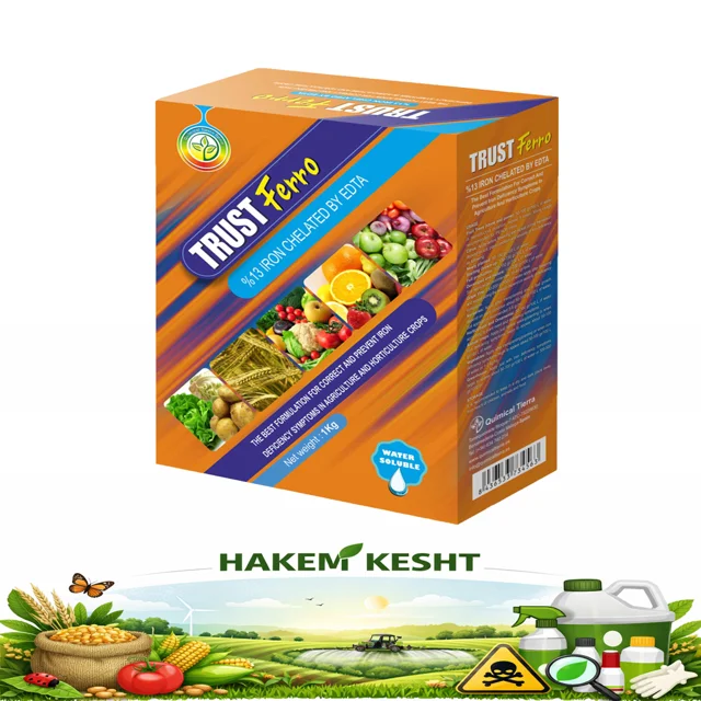 تراست فرو با فرمولاسیون پودر و کلات EDTA برای پیشگیری و درمان کمبود آهن در گیاهان باغی، زراعی و گلخانه ها استفاده می شود و رشد گیاه را تا حد زیادی تقویت می کند. عنصر آهن یکی از اجزاء مهم سیستم آنزیمی گیاه است که در فعالیت های مهم و حیاتی از جمله فتوسنتز، تنفس و احیاء نیتروژن نقش دارد و کمبود آن موجب کلروز برگ ( زردی بین رگبرگی) و کاهش فتوسنتز می شود.
